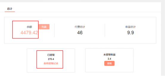 1. 点击进入投放广告管理下的费用管理菜单,可以看到作家的未提现收益