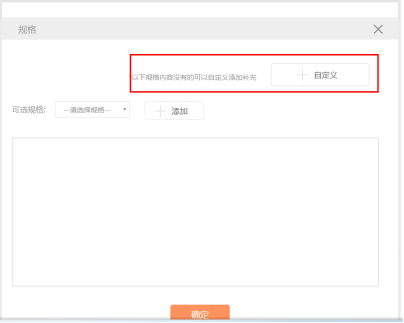 - 如果没有合适的规格,您还可以点击“+自定义”按钮,进入“自定义规格”页面,添加新的规格。