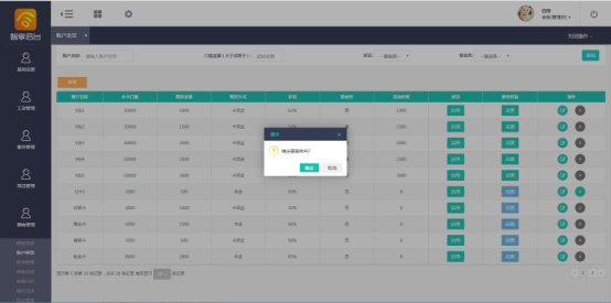 3)点击会员账户类型后面的【删除】,弹出删除“提示”弹窗(注:账户类型删除只能删除没有顾客使用过的账户类型,若有顾客使用则无法删除)