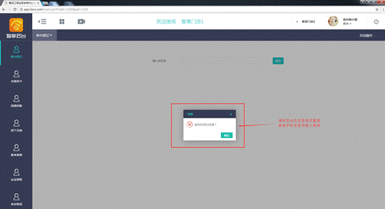如果该手机号已经在本商户办理过会员,系统会弹框提示“该手机号已经注册会员了”,不能为该手机号办理新会员。