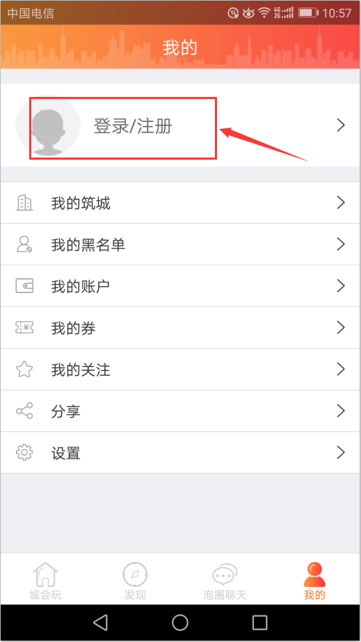 - 在“我的”界面,点击“登录”按钮,进入到“登录“页面;