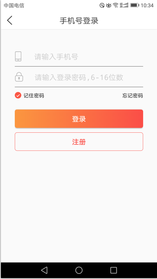 在登录界面输入用户正确的“手机号”、“密码”,(可选择“记住密码”方便下面登录不用再输入密码)点击“登录”按钮,即可登录成功。