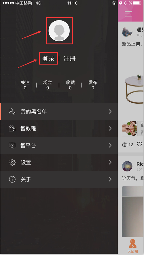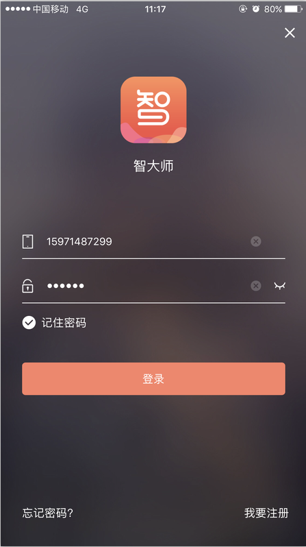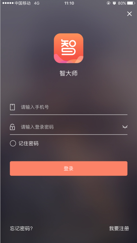 - 在“我的”页面,点击“头像”或“登录”按钮进入到智大师登录页面;