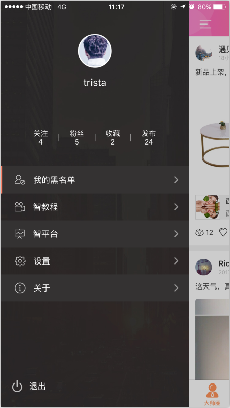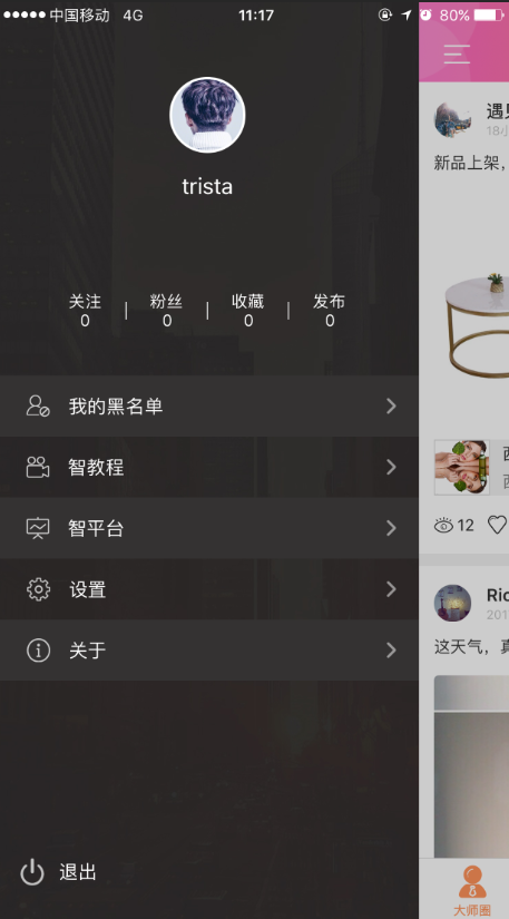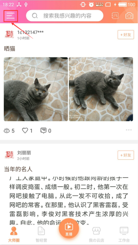 - 在当前页面,滑动左侧边沿向右侧滑动或点击左上角的菜单按钮进入到“我的”页面;