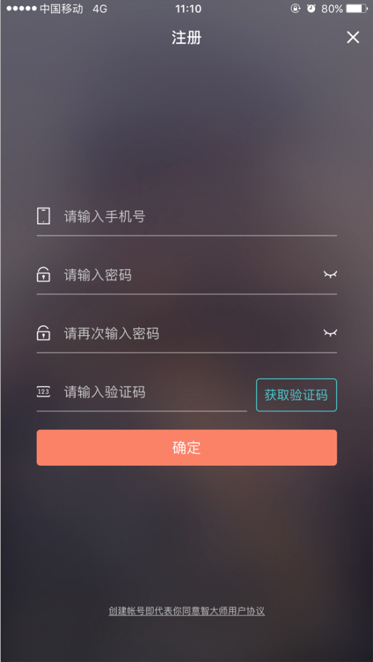 - 点击“注册”按钮,进入到智大师“注册”页面;