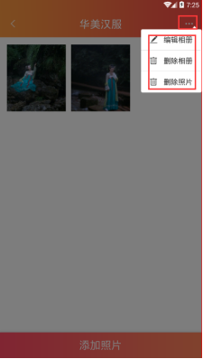 - 点击进入相册. 点击右上方的图片. 可对当前照片及相册进行编辑。