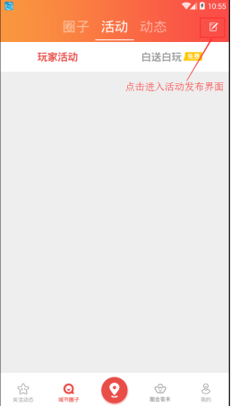 4、点击页面右上方的图标,进入“发布玩家活动”界面;