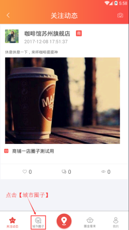 1. 点击【城市圈子】进入“圈子列表”界面