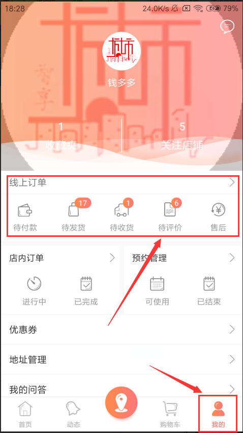 1.进入云店,点击“我的”,进入我的界面,找到“线上订单”栏目,点击“待评价”按钮,进入“待评价”界面: